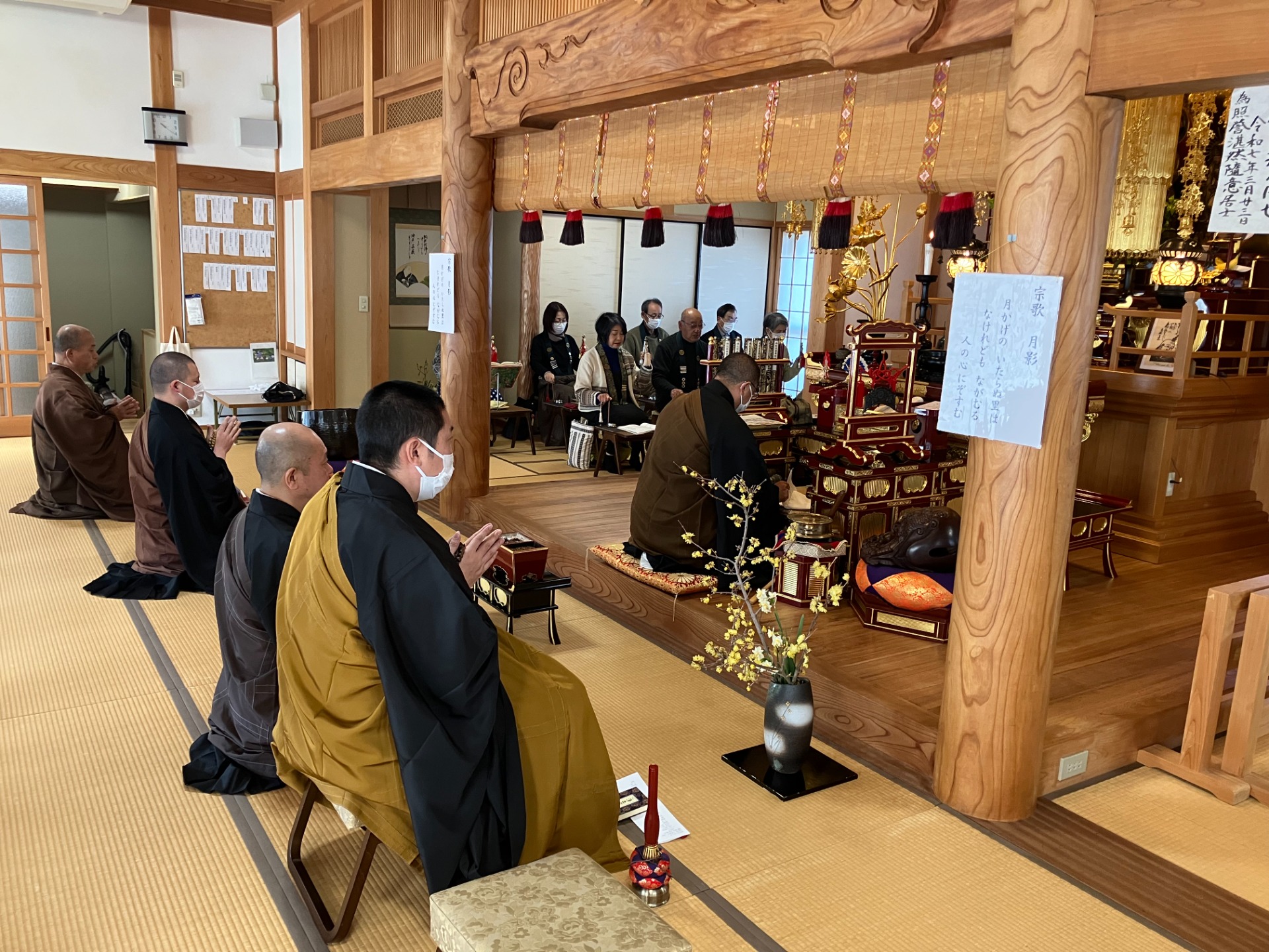 令和7年度の六時礼讃会は、年が明けましての令和8年2月に松阪組の大福寺様を会所に開催いたしました。檀家様には吉水流の御詠歌を奉納いただき、ともに念佛礼拝をおつとめいたしました。